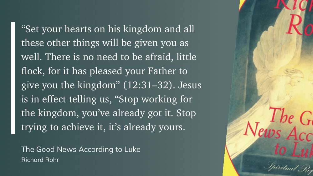 Jesus is in effect telling us, “Stop working for the kingdom, you’ve already got it. Stop trying to achieve it, it’s already yours.